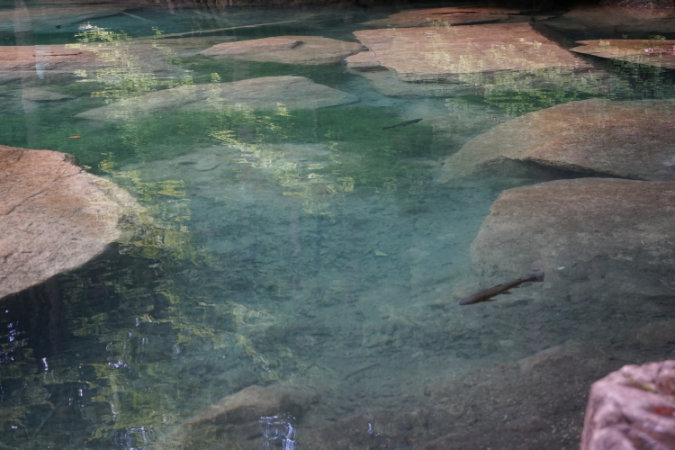 River trout have favourite hiding places where they can hide well, such as a water plants, tree roots or rocks in the stream bed. This protects them from predators such as the heron. And this is also where they find their favourite food: Freshwater shrimps, aquatic insects, larvae and insects that have fallen into the water.