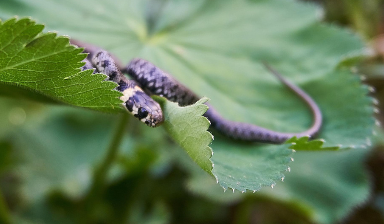 In most cases it is a real snake called the grass snake (Natrix natrix), sometimes called the ringed snake or water snake. The snake is very shy and completely harmless for us. It is usually found near waters, from small meadow brooks to lakes or streams.