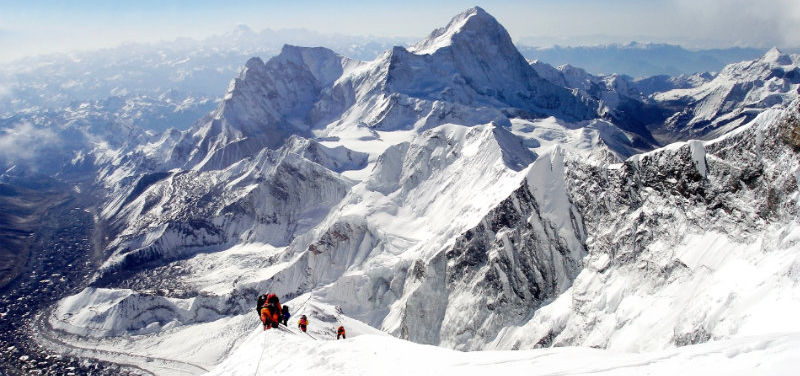 On the highest mountain on earth you can survive only with a oxygen flask.