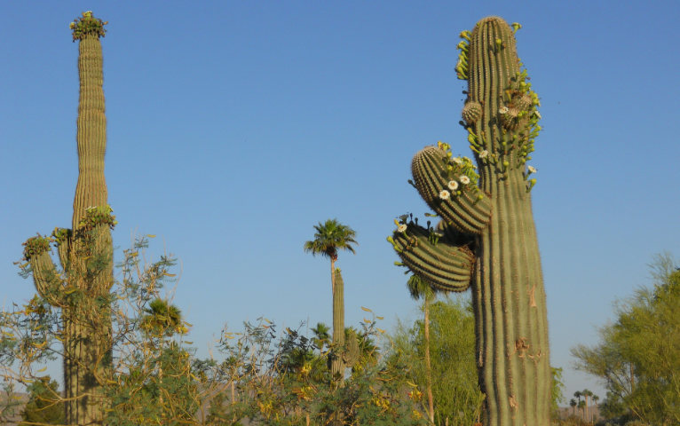 Nevertheless, plants can grow there. Besides trees and flowers, there are several species of cacti in the Sonora Desert, one of which is called saguaro.