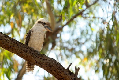 Mr. and Mrs. Kookaburra live in the forest. They build their nest in a hollow tree. In September, the mother lays 2-4 eggs. After 3.5 weeks, the babies hatch. They have no feathers, but after one month they are ready to leave the nest.