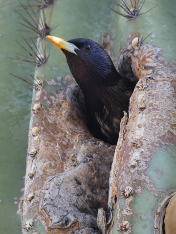 Woodpeckers dig small holes in its waxy skin where they build nests for their offspring.