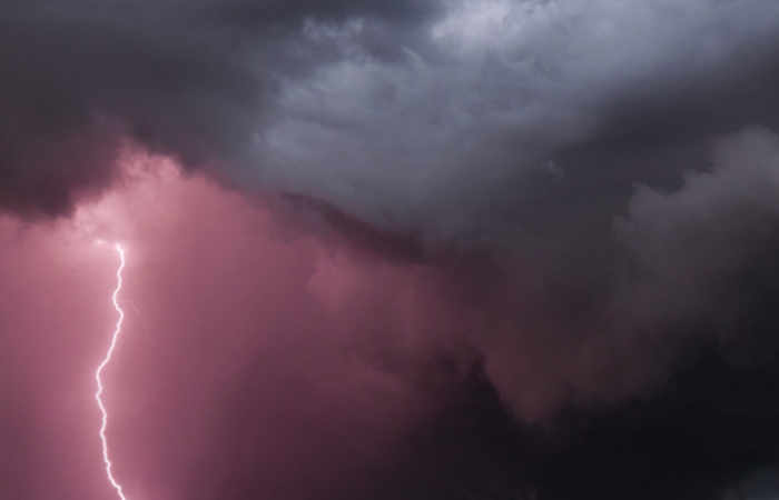Water droplets and ice particles that rise and fall in thunderclouds separate electrical charges and thereby generate tensions.