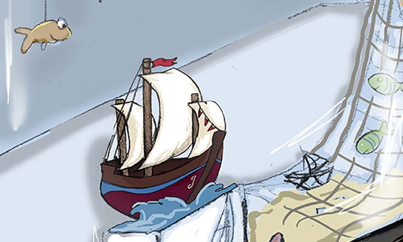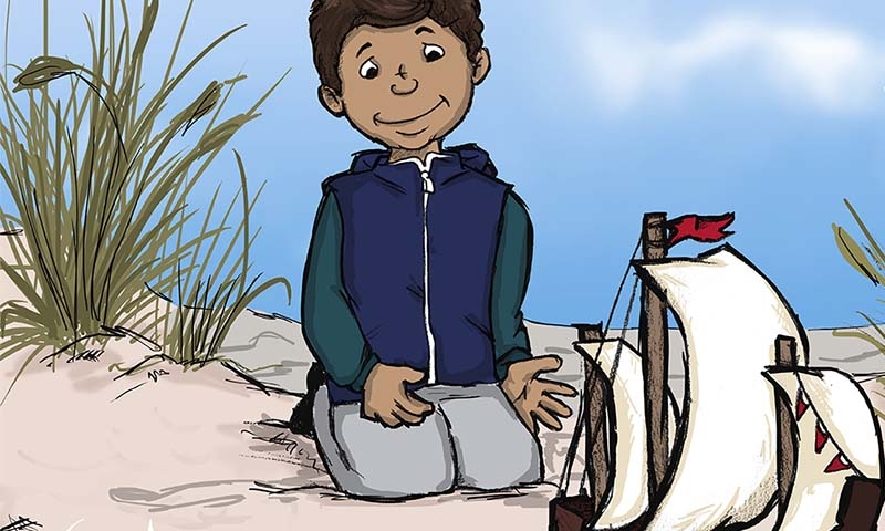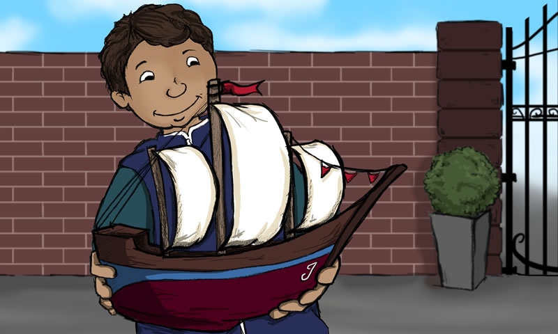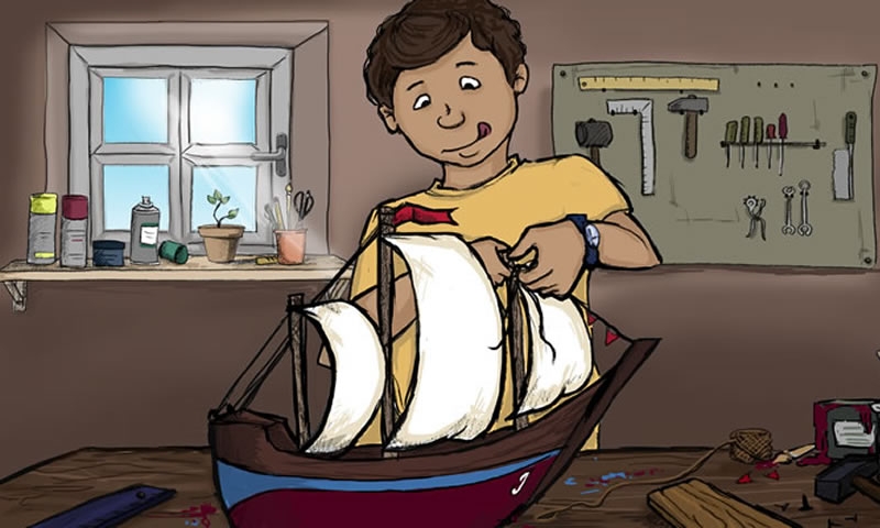 Enthusiastically he worked for days building a sailboat. He was even allowed to go into his father’s workshop.