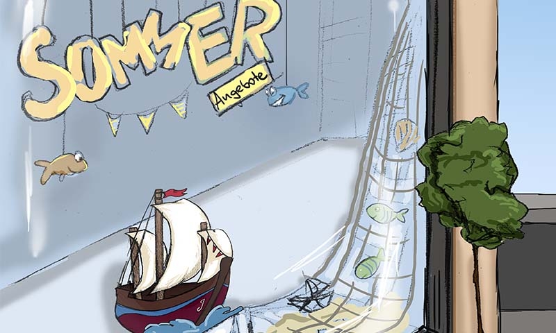 The last thing he did was to paint the sailboat with red and blue paint, and on all three masts he hung a white sail.