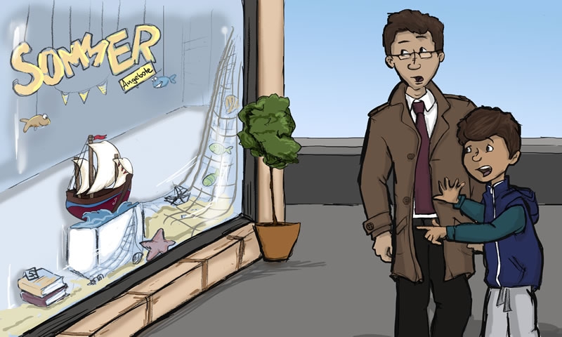 Jeff ran into the store towards the saleswoman: "This sailboat doesn’t belong to you. It belongs to me."