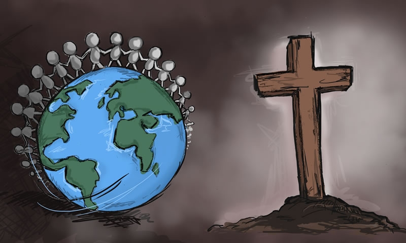 "Well, God made man, but then man went away from God because of sin. When Jesus died on the cross, He paid with His life so that we could belong to God again."